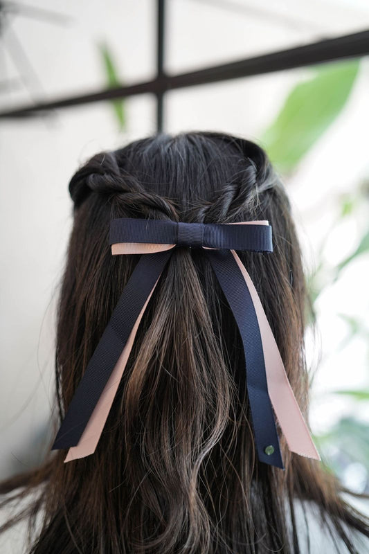 ネイビーバレッタ / Navy Ribbon Barrette